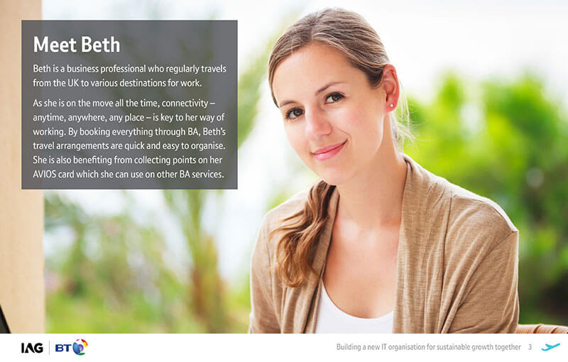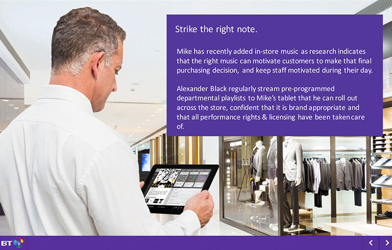 Another successful JPC/BT collaboration – the DILO – ‘Day In the Life Of’ scenario selling tool was conceived to help BT Global Services convey complex technical solutions through simplified, humanised storytelling. Operating as a key tactic in opportunity conversion, training and sales enablement, the DILO format ranges from simple and affordable PPT, to video and interactive demos, and is now venturing into AR and VR to deliver a truly immersive experience.