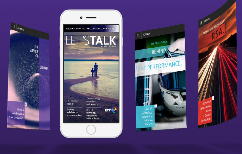 Already ahead of the curve with the BT Let’s Talk platform, BT needed to target insightful content directly to an often time-poor audience. But they wanted a platform that would maximise their existing content efforts. JPC & BT collaborated to design, build and publish the Let’s Talk Global Edition e-zine. Compatible with Android, Windows and iOS, the app pushed content directly to subscribers, while driving back to the BT site via carefully edited connected content links.