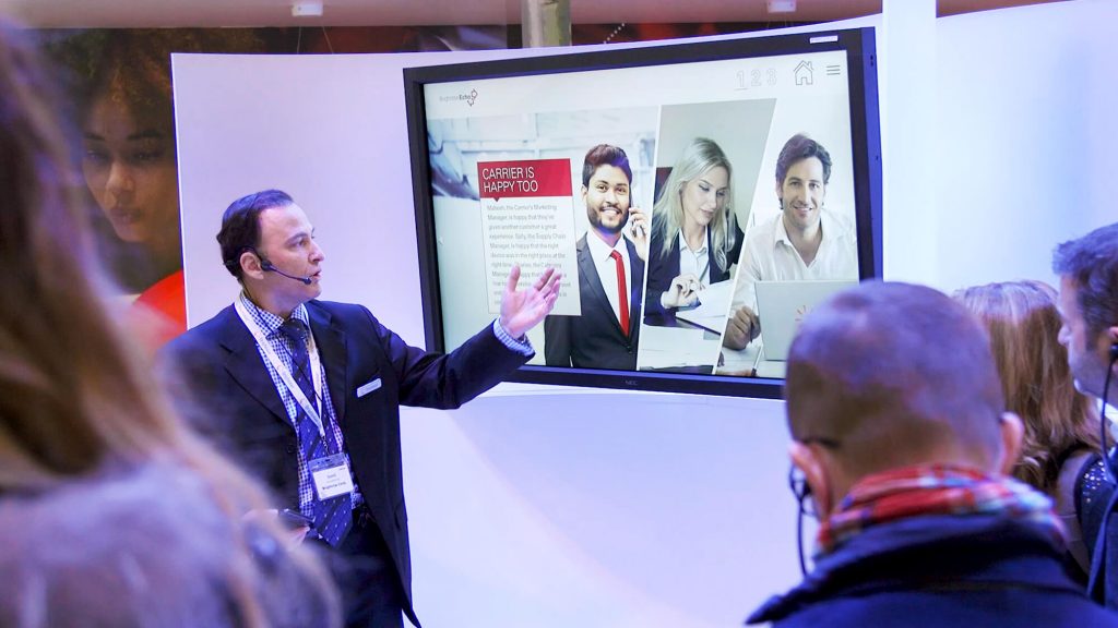 Customers were then offered an interactive touch screen overview; made available at critical touch-points across the stand. Showcasing Brightstar’s full portfolio, it allowed us to make the journey very specific, addressing key customer pain points via a combination of carefully considered solutions, all underpinned by Brightstar’s powerful intelligent platform.